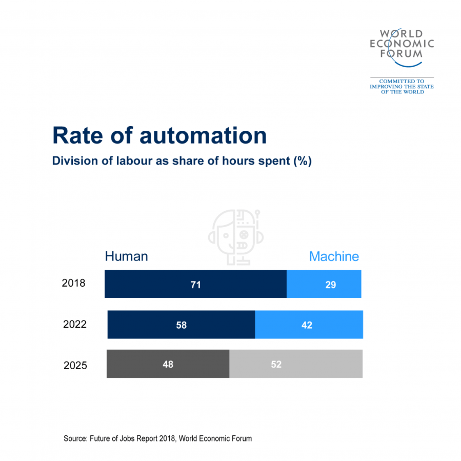 Nearly 50% of companies expect that automation will lead to some reduction in their full-time workforce by 2022, based on the job profiles of their employee base today. However, 38% of businesses surveyed expect to extend their workforce to new productivity-enhancing roles, and more than a quarter expect automation to lead to the creation of new roles in their enterprise. ~ WEF 2018-22 Jobs Report.