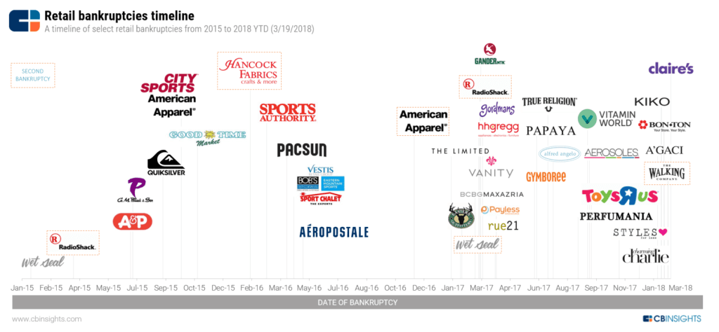 EXAMPLE: If you’re in the services and retail industries then automation‘s impact should already be patently clear, through the recent timeline of brand-name bankruptcies.